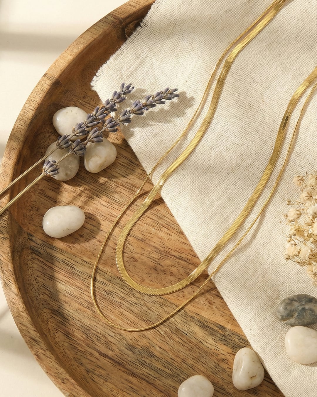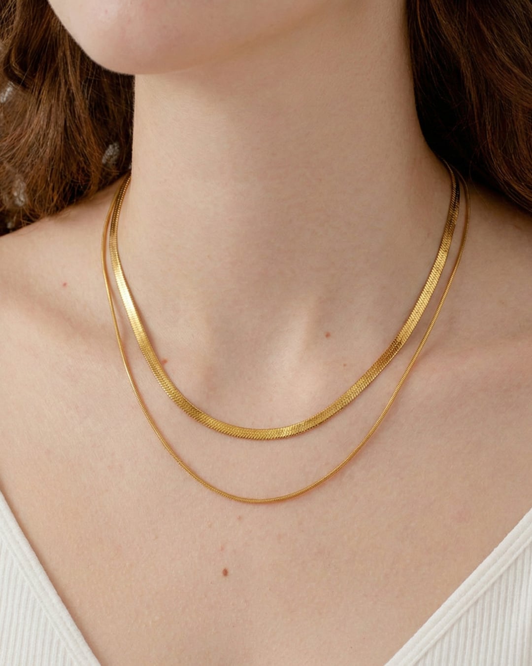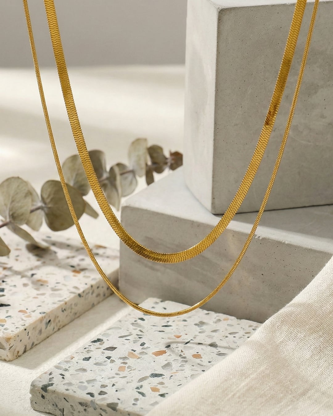 フラットチェーンと繊細なチェーンを重ねた、