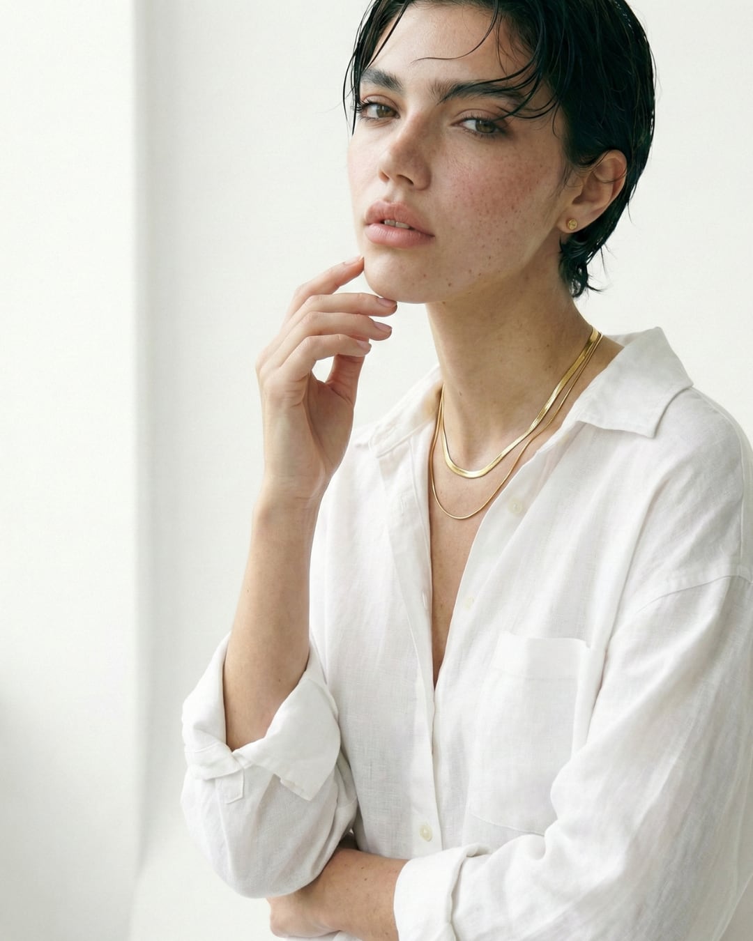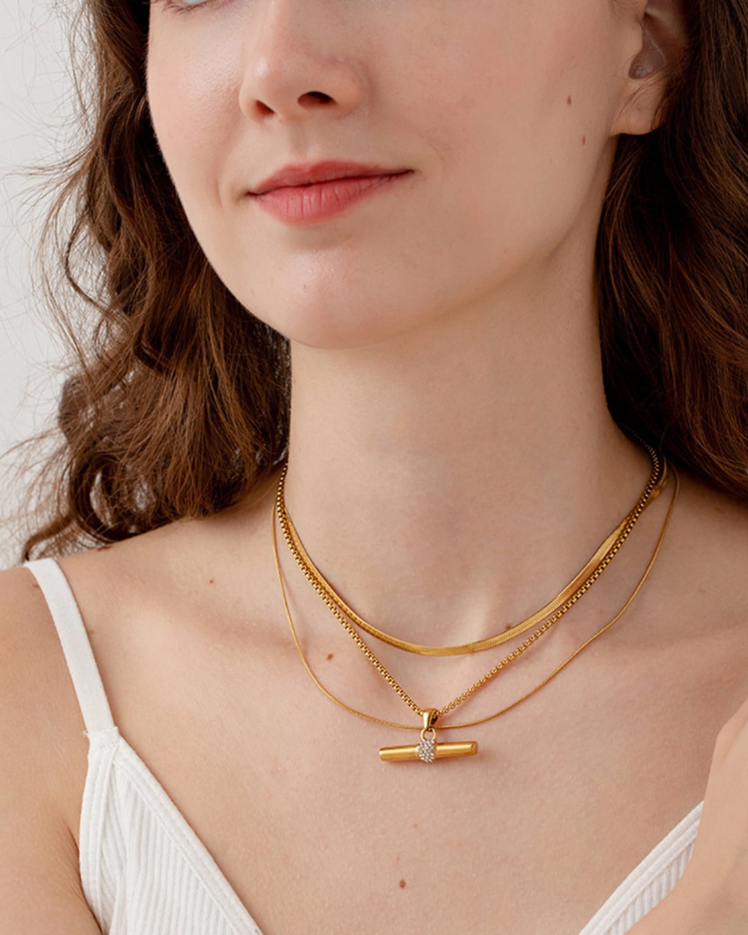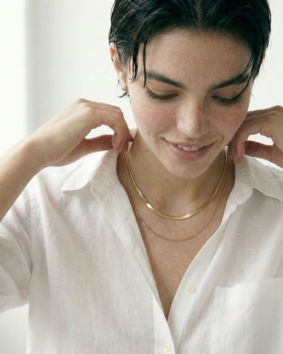 シャツにも、ニットにも、素肌にも自然になじみ、