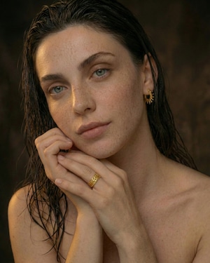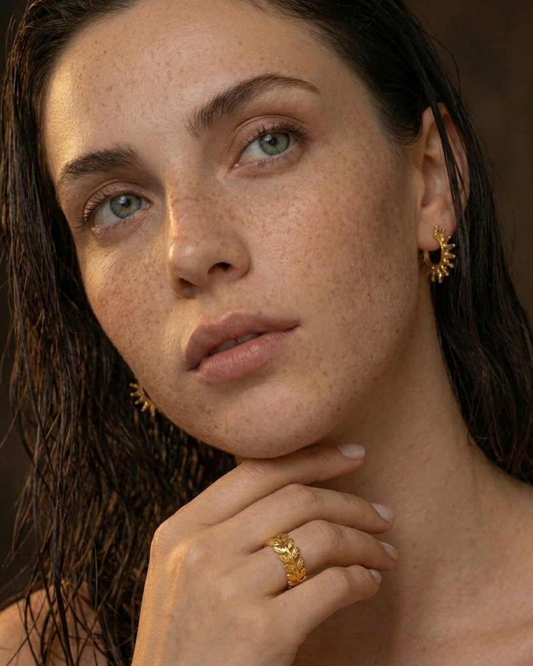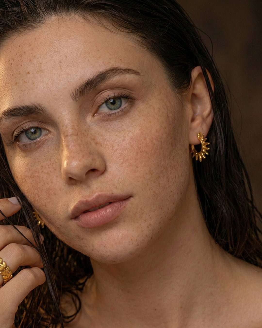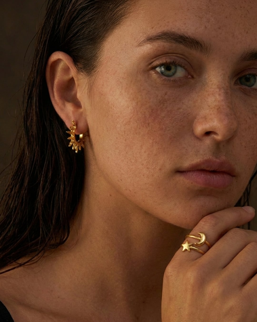 光をまとうように、耳元で静かに存在感を放つピアス。