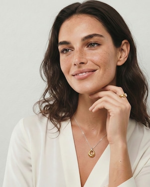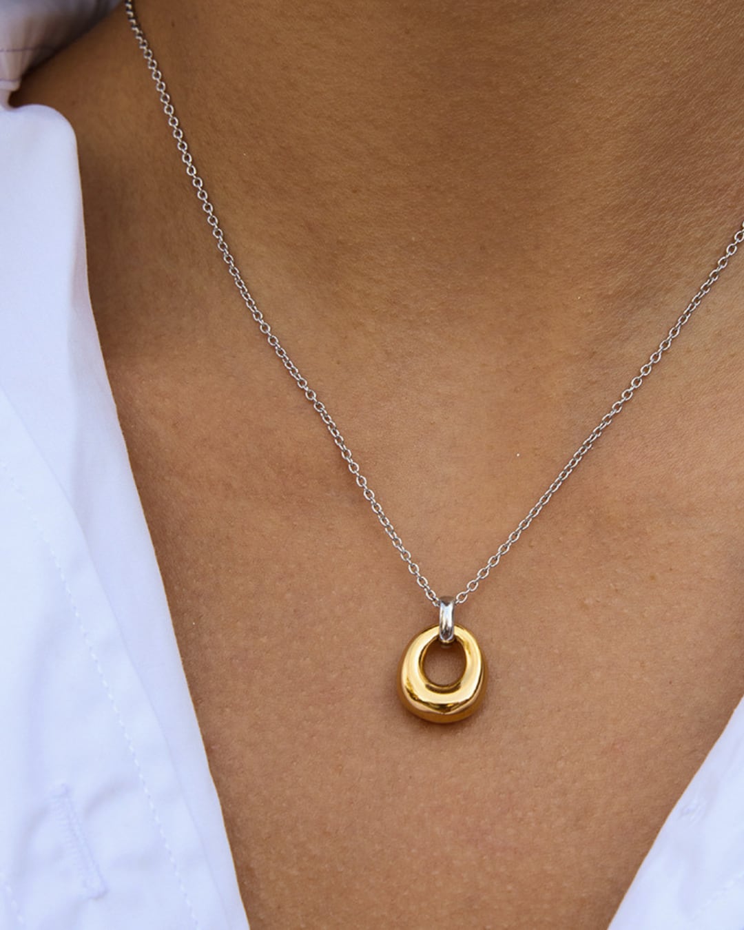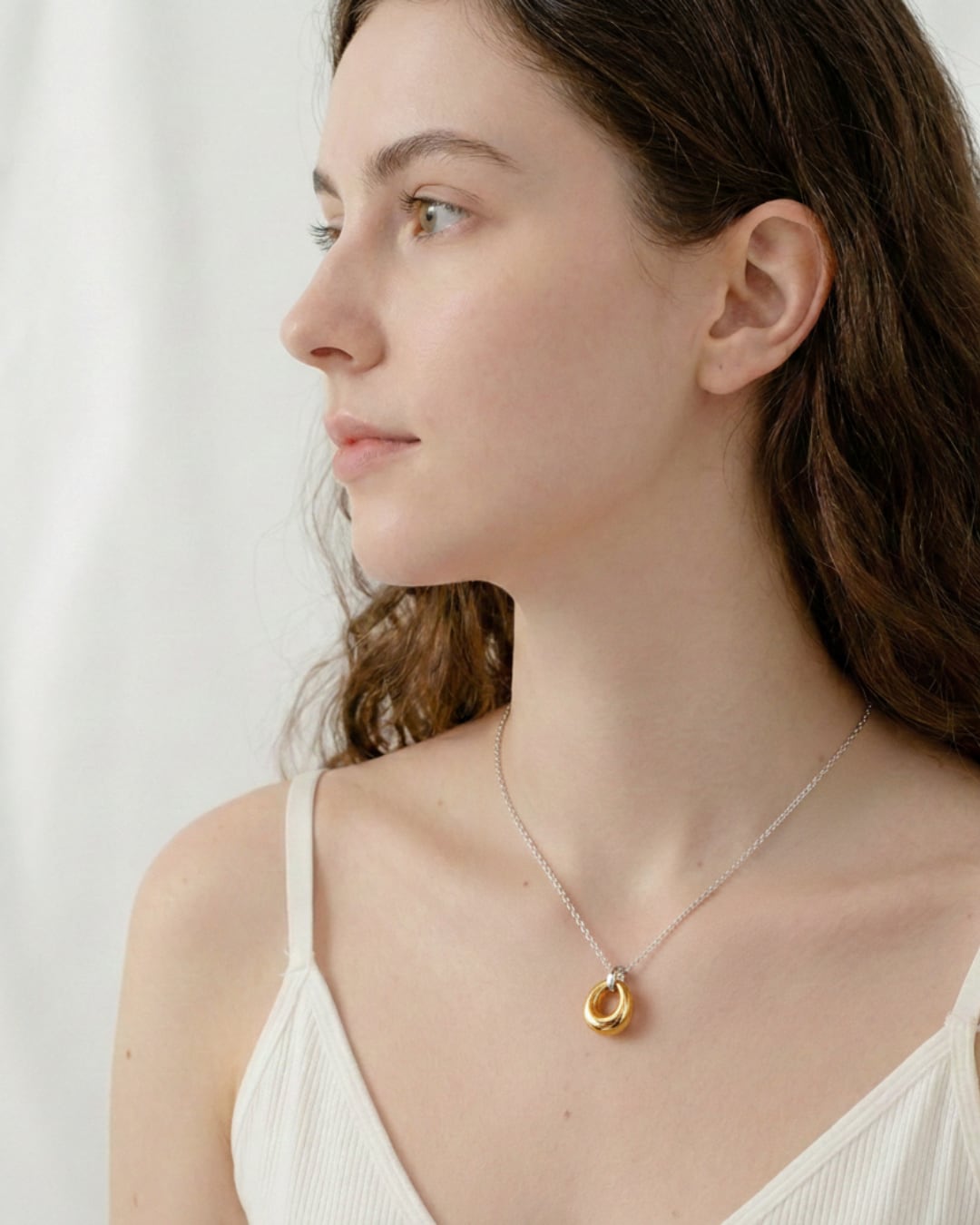 ゴールドとシルバーのコントラストを落とし込んだペンダントネックレス。