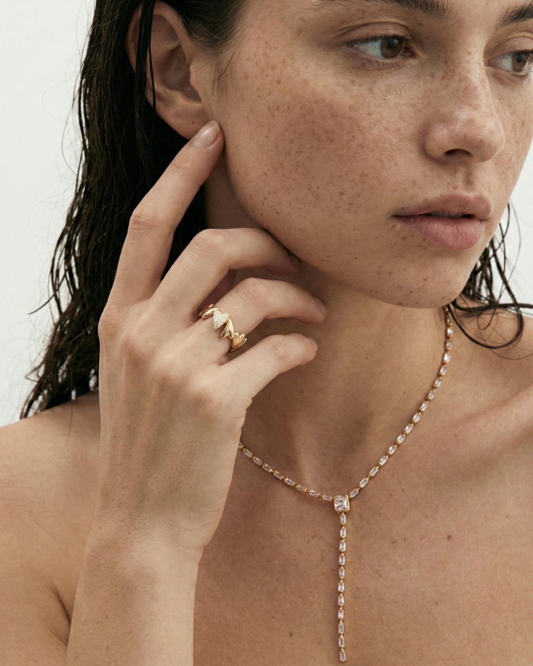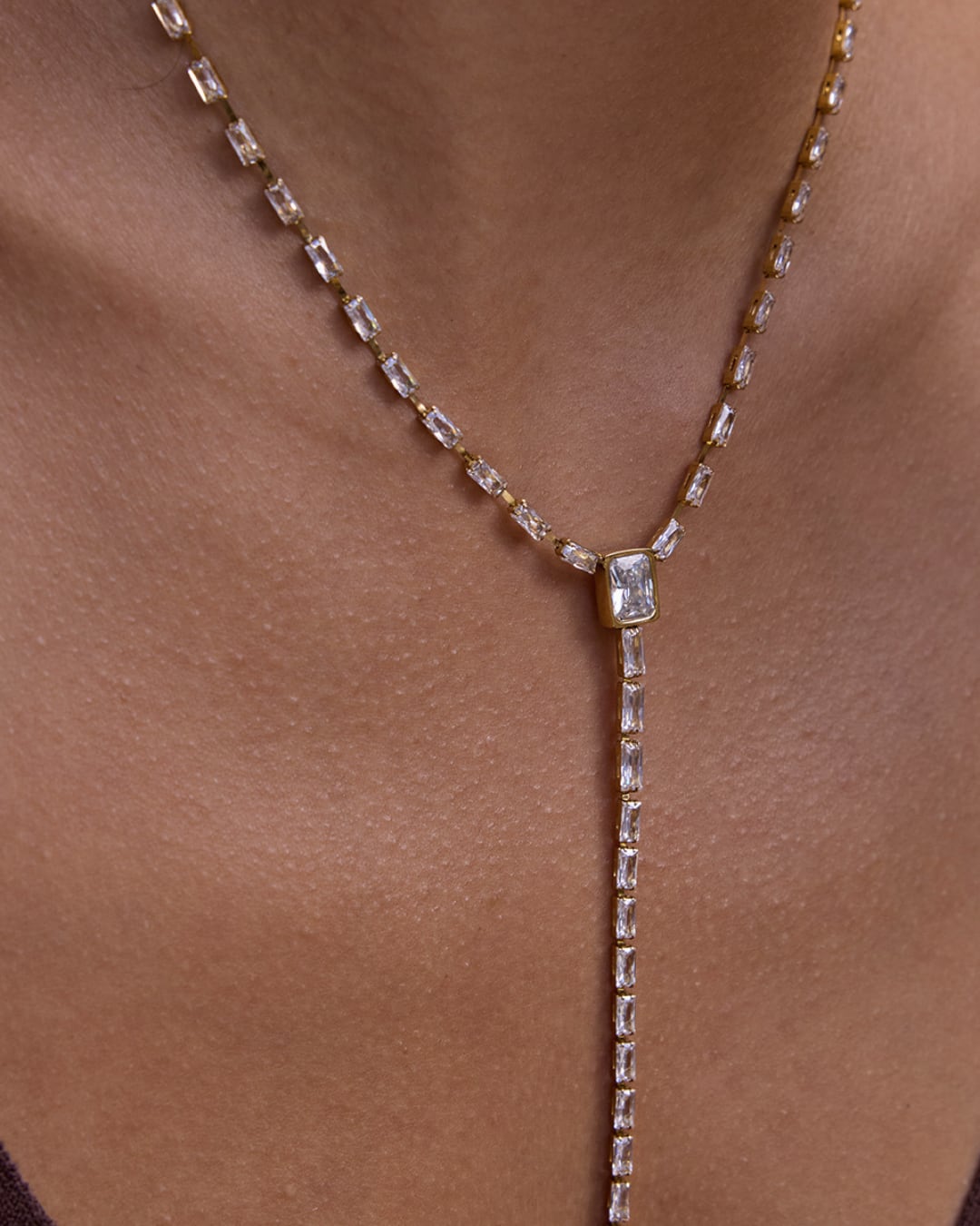 縦に流れるようなYラインが、首元をすっきり美しく見せてくれるネックレス。