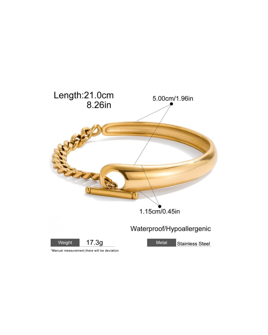 316L T-Bar Curve Chain Bracelet