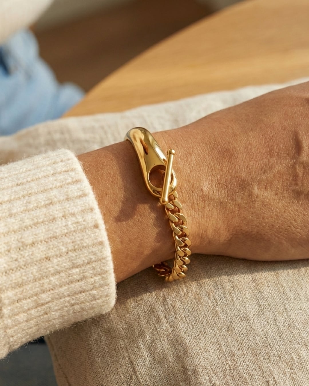 手首に自然に沿い、動くたび静かに艶が映えます。