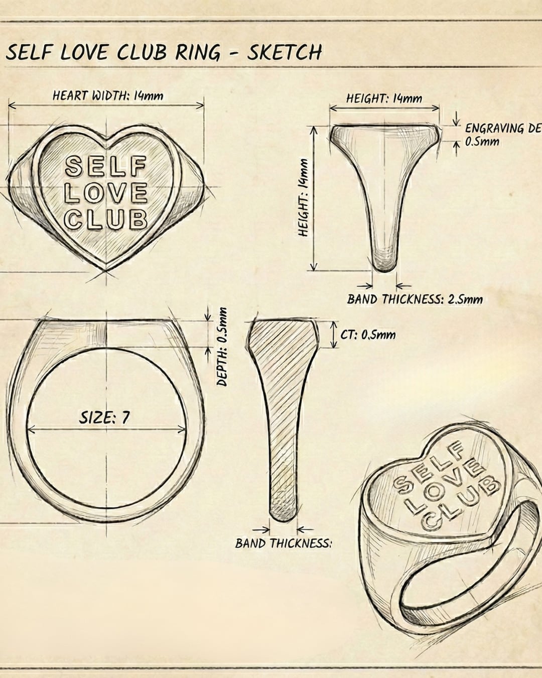自分自身を愛し、肯定する力を持つ女性たちからインスピレーションを受けて誕生。毎日の小さな自己肯定の瞬間を、このリングを通して感じていただきたいという想いから、SELF LOVE CLUBの刻印を施しました。